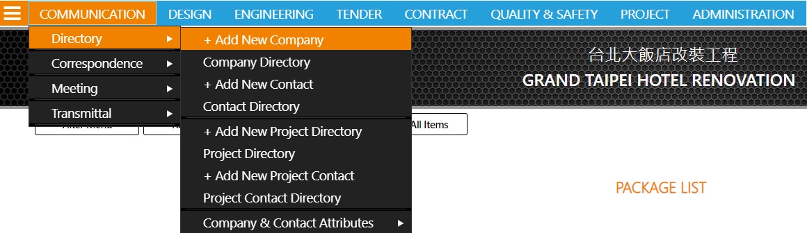 IntroductionThe Company Directory consists of all the project-wide companies, organizations, and contacts. In Bravopm, when you create a new project, the company and contact persons are imported from Company Directory. If there are new owners, architects, consultants, or contractors and the corresponding contacts involved in the project, you should create their records in Company Directory, and then import them to Project Directory. By doing so, it can maintain the informational consistency and save your time in duplicate tasks.