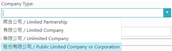 The dropdown-list fields are for setting the attributes of companies. Users can define the items of dropdown-list by themselves.