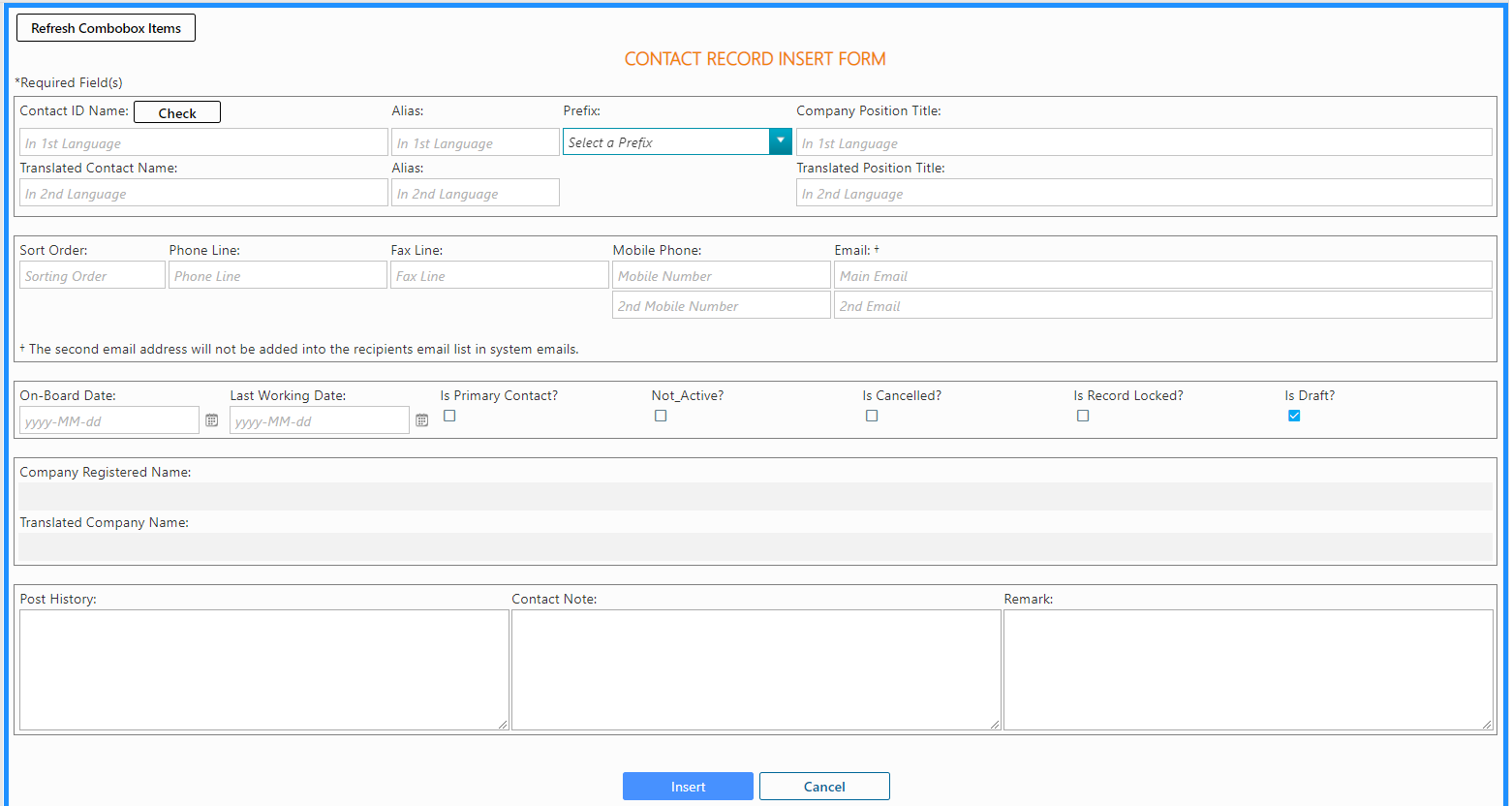 Step 2 Complete the [Company Record Insert Form]
