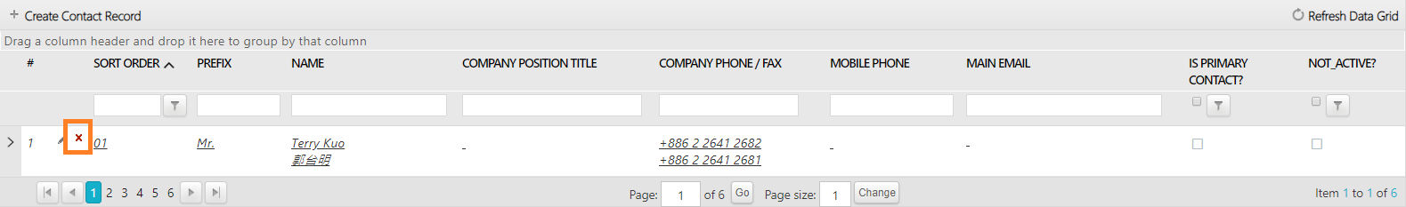 - It is forbidden to delete a non-drafted record, namely, an official record. If a contact record is invalid, you can place a checkmark on [Is Cancelled?] to show that this contact record is no longer in use.