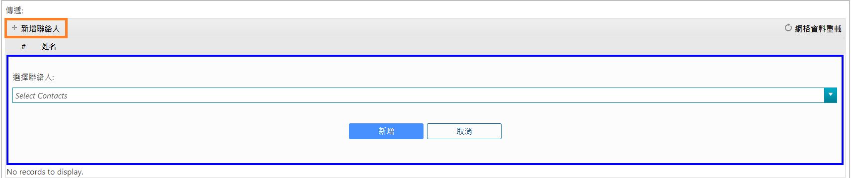 按下左上方[+新增聯絡人],在下拉框選單中選擇需回覆此筆工程諮詢的聯絡人員,勾選完按下[新增]。