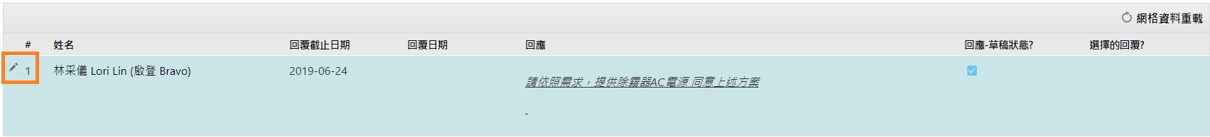 [答覆內容]:收到回覆人送出的答案後,PM人員可從此選出問題回覆,統整後於此欄位填寫該問題的正式回覆。