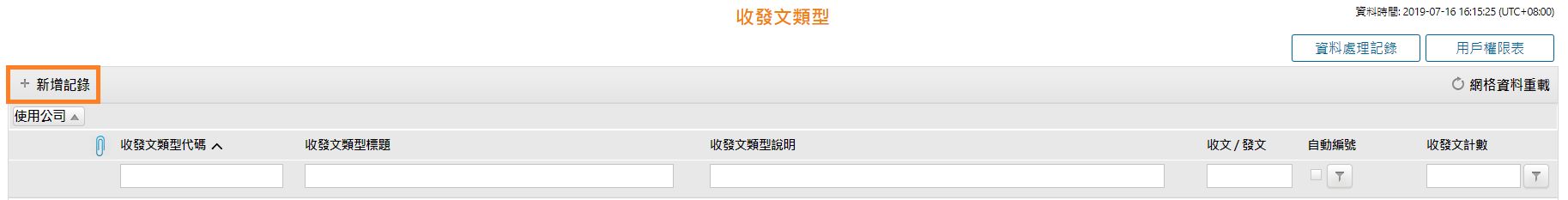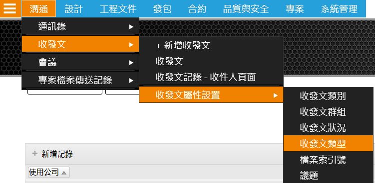 - 新增收發文記錄前,需先至屬性設置建立收發文類型。若所需類型已建立,可直接至[收發文]中建立記錄。