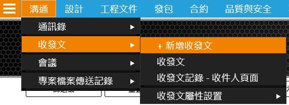 如圖所示,展開溝通功能表,點選[+新增收發文]。