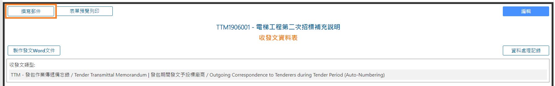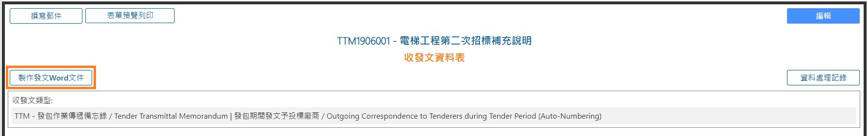 例如:發包作業傳遞備忘錄(Tender Transmittal Memorandum),可將收發文類型代碼設為TTM。