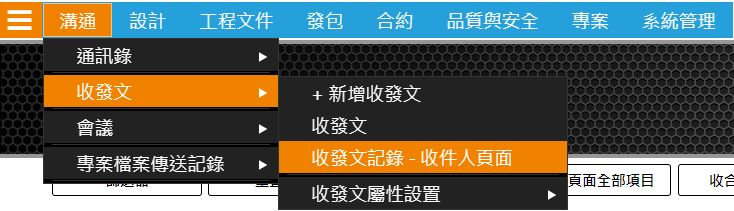 此頁面只供用戶瀏覽收發文,但無法對記錄進行新增或編輯,當因權限考量等因素不希望某用戶更動記錄時,可只對其開放收件人頁面權限,並在該頁面中瀏覽記錄。